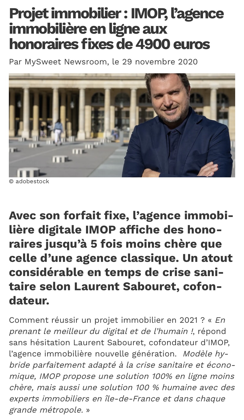 C’est cette question que l’agence immobilière en ligne Imop s’attache à résoudre en réconciliant humain et digital avec en ligne de mire la question du pouvoir d’achat.