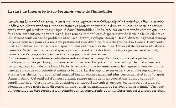 Interviewé par le magazine Le Nouvel Economiste, Damien David cofondateur d'Imop revient sur la percée des agences immobilières en ligne qui ne cessent de prendre des parts de marché aux agences immobilières historiques du secteur.